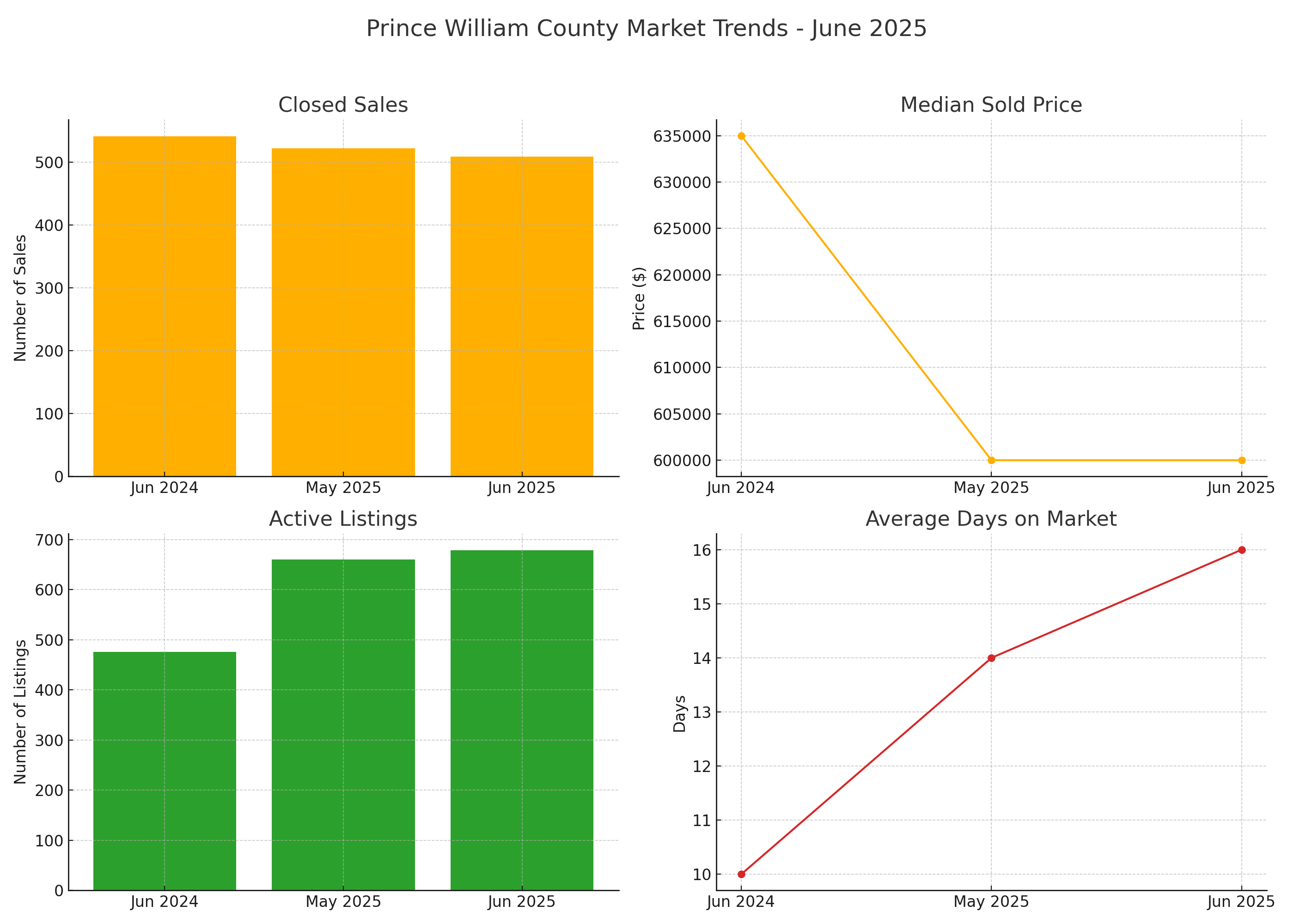 After a bustling spring season, Prince William County’s real estate market is showing signs of cooling down as we move into the heart of summer. While prices remain stable, transaction volume continues its year-over-year slide — creating a more balanced landscape for both buyers and sellers in this historically fast-paced Northern Virginia market.